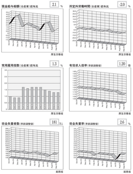 2025年9月の完全失業者数(季節調整値)は「181万人」。2024年7月の「183万人」以来の上振れとなった。失業率(季節調整値)「2.6%」は先月と同じながら、やはり2024年7月「2.6%」以来の上昇となっている。