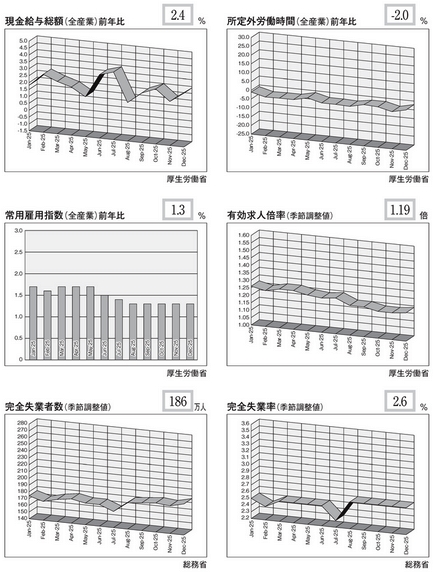 2025年12月の数値は引き続き、上下変動は小さい。とりわけ完全失業率「2.6%」は5ヵ月同じ数字で推移している。